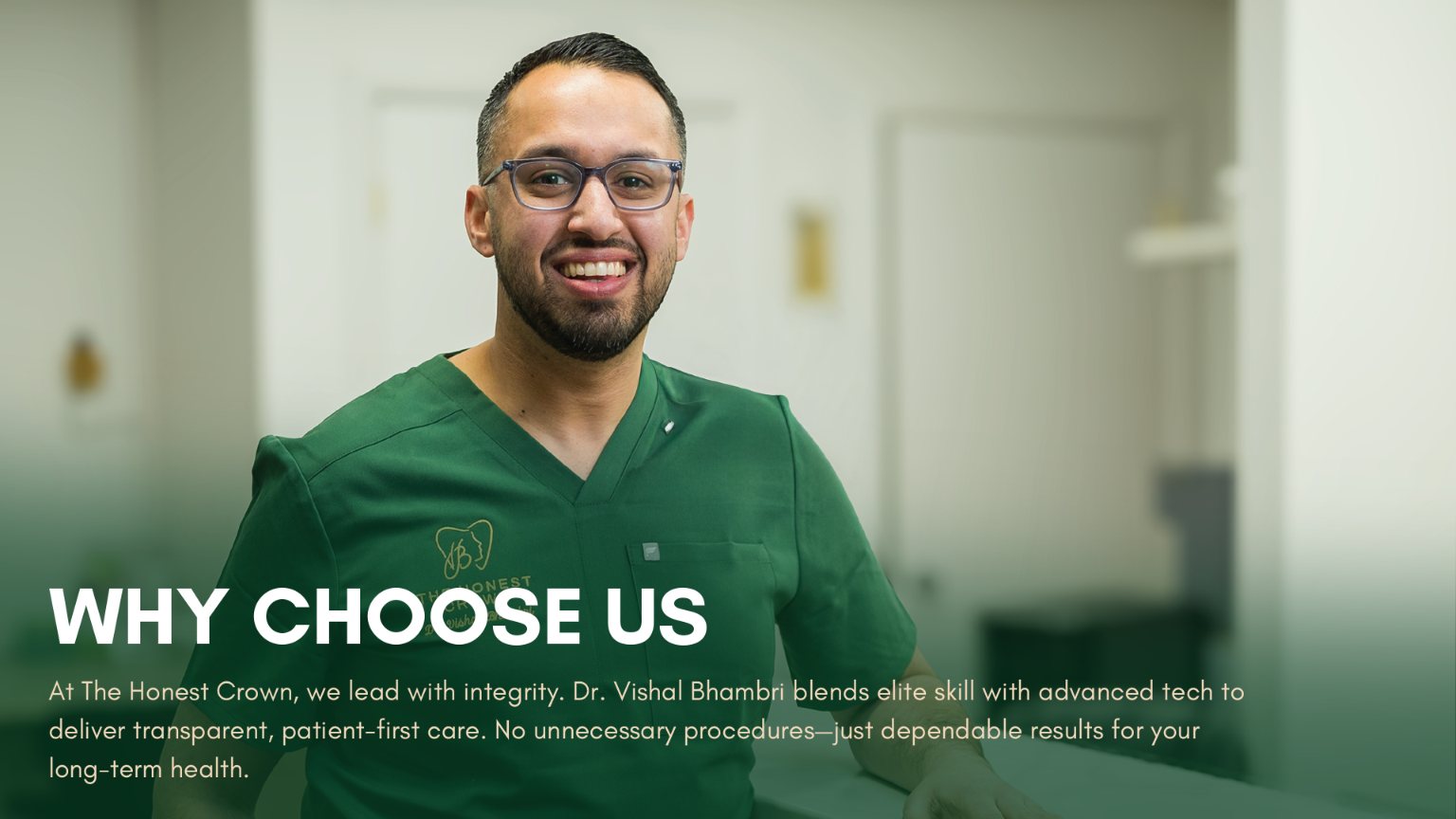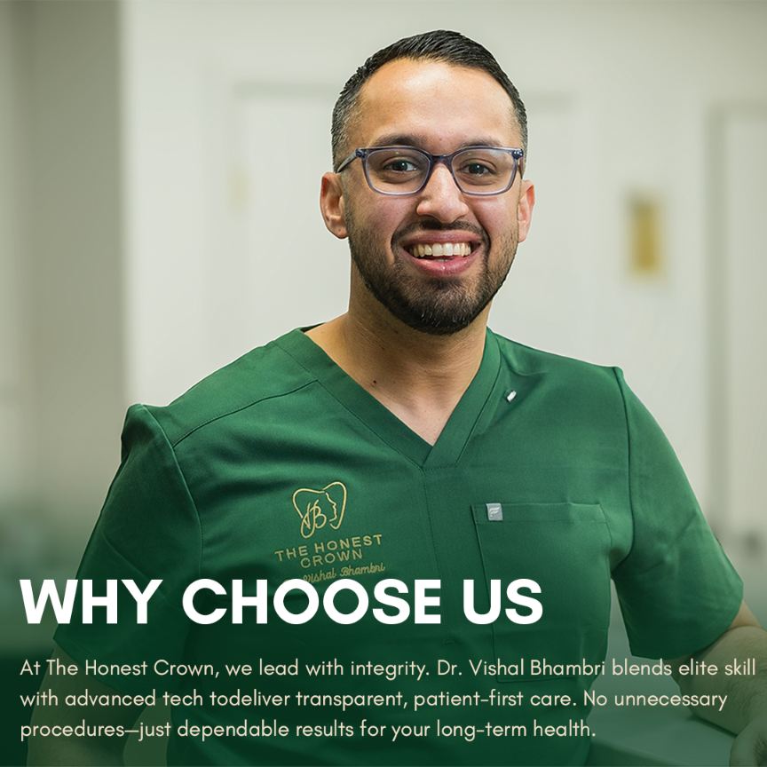 At The Honest Crown, we lead with integrity. Dr. Vishal Bhamri blends elite skill with advanced tech to deliver transparent, patient-first care. No unnecessary procedures—just dependable results for your long-term health